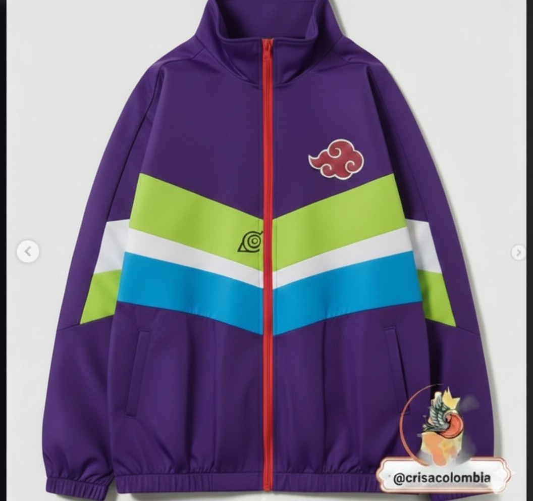 En segundo lugar, la silueta ha sido pensada bajo un concepto Oversize, proporcionando ese ajuste holgado y cómodo que domina las calles hoy en día. Con respecto al diseño, los emblemáticos símbolos de Akatsuki y la Aldea de la Hoja se aplican mediante sublimación de alta gama. Gracias a este proceso, los tonos morados, verdes y azules mantienen su intensidad neón sin desgastarse. Debido a que es una prenda sin reflectivos, proyecta un estilo minimalista y limpio, perfecto para elevar cualquier outfit de tendencia techwear o urbana.