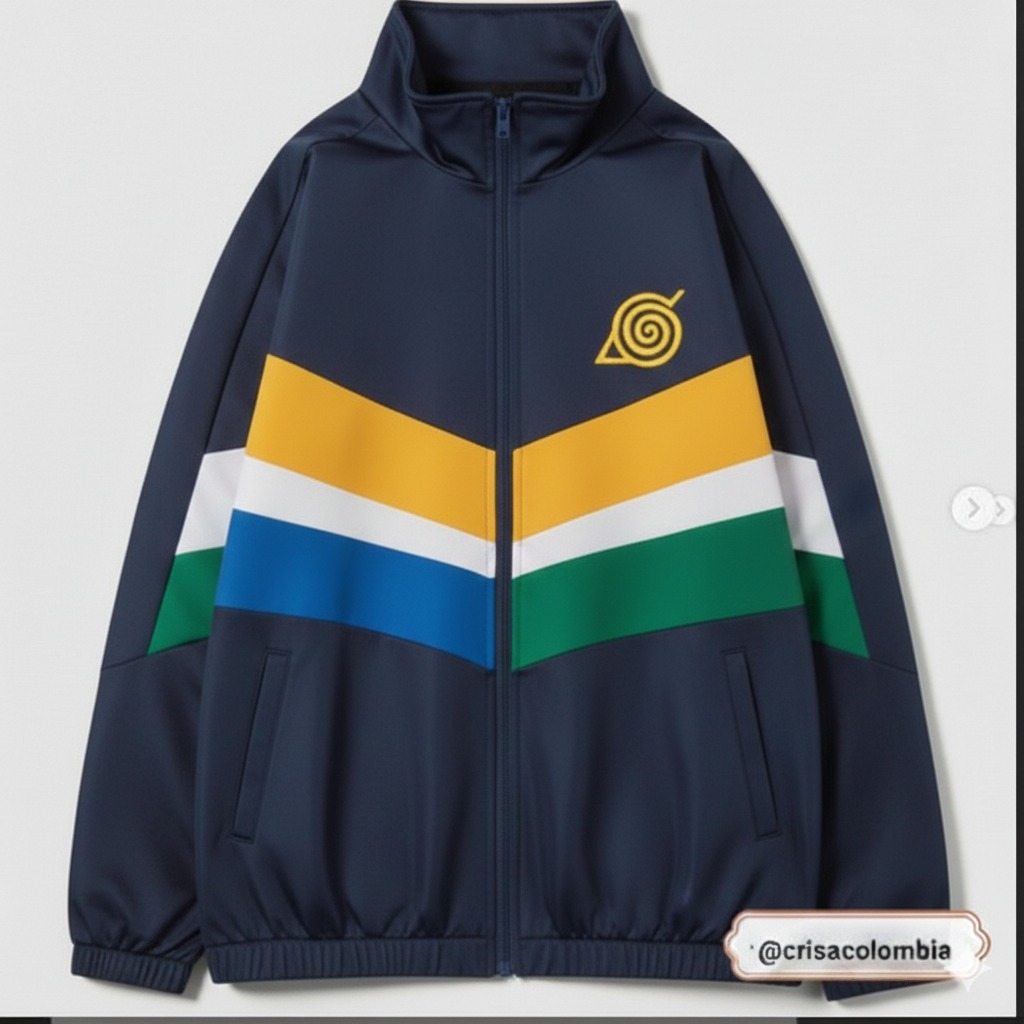 Por otra parte, el diseño apuesta por la tendencia Oversize, ofreciendo una silueta holgada que garantiza total fluidez en cada movimiento. En cuanto a los detalles, el emblema de la Aldea de la Hoja se aplica mediante sublimación de alta fidelidad, una técnica distintiva de Productos Crisa que permite que los tonos azul oscuro y blanco permanezcan impecables con el tiempo. Gracias a su estética sin reflectivos, la chaqueta conserva un look minimalista, permitiendo que sea la pieza clave de cualquier conjunto de streetwear.