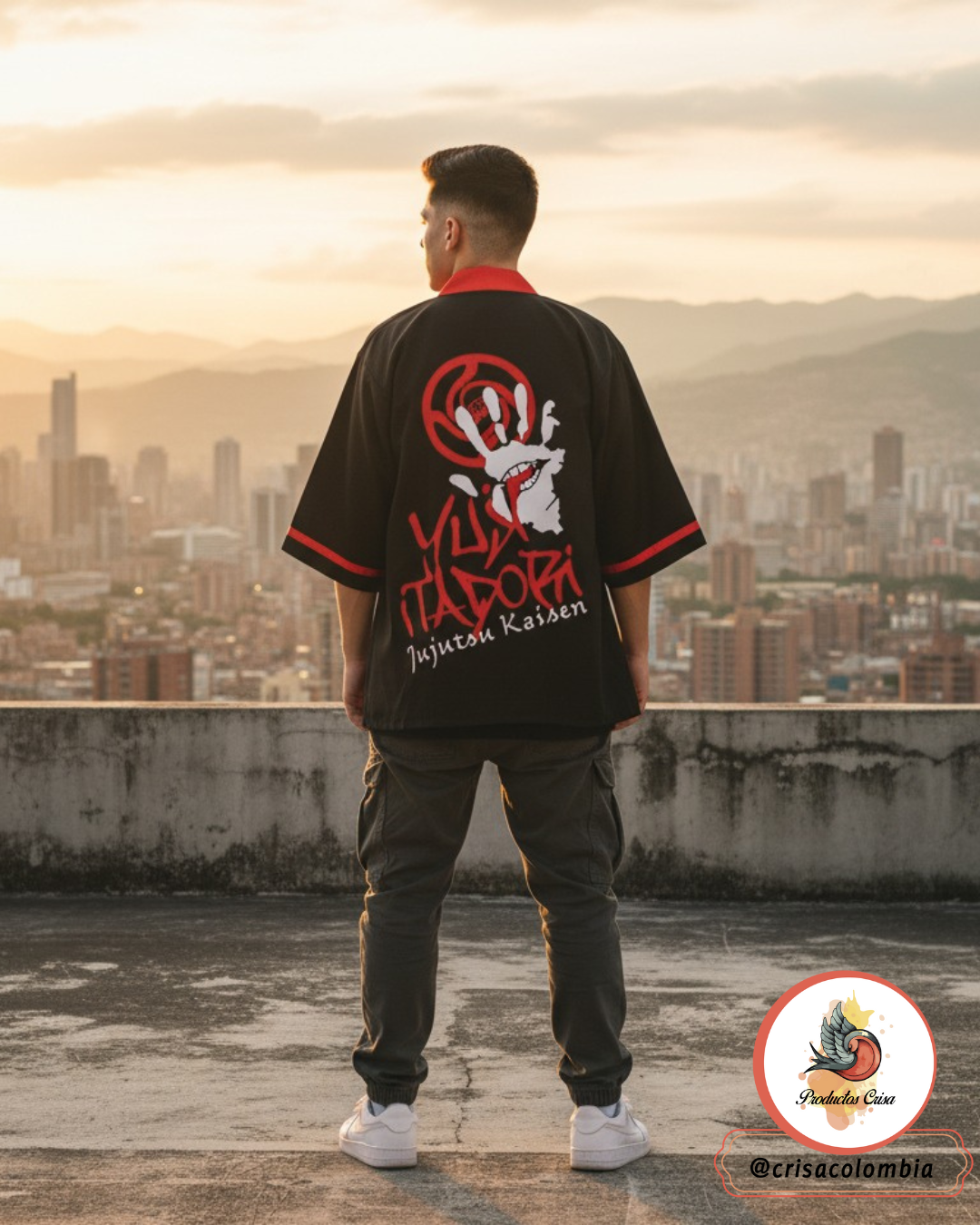 ¡Lleva tu pasión por el anime al siguiente nivel con el Kimono de Yuji Itadori de Jujutsu Kaisen de Productos Crisa! Este diseño exclusivo captura la esencia del carismático protagonista, con un impactante estampado en la espalda que representa su poder y la icónica maldición de Sukuna. Es la prenda perfecta para fans que quieren lucir su afición con estilo, combinando la tradición japonesa del kimono con el moderno y oscuro universo de Jujutsu Kaisen.