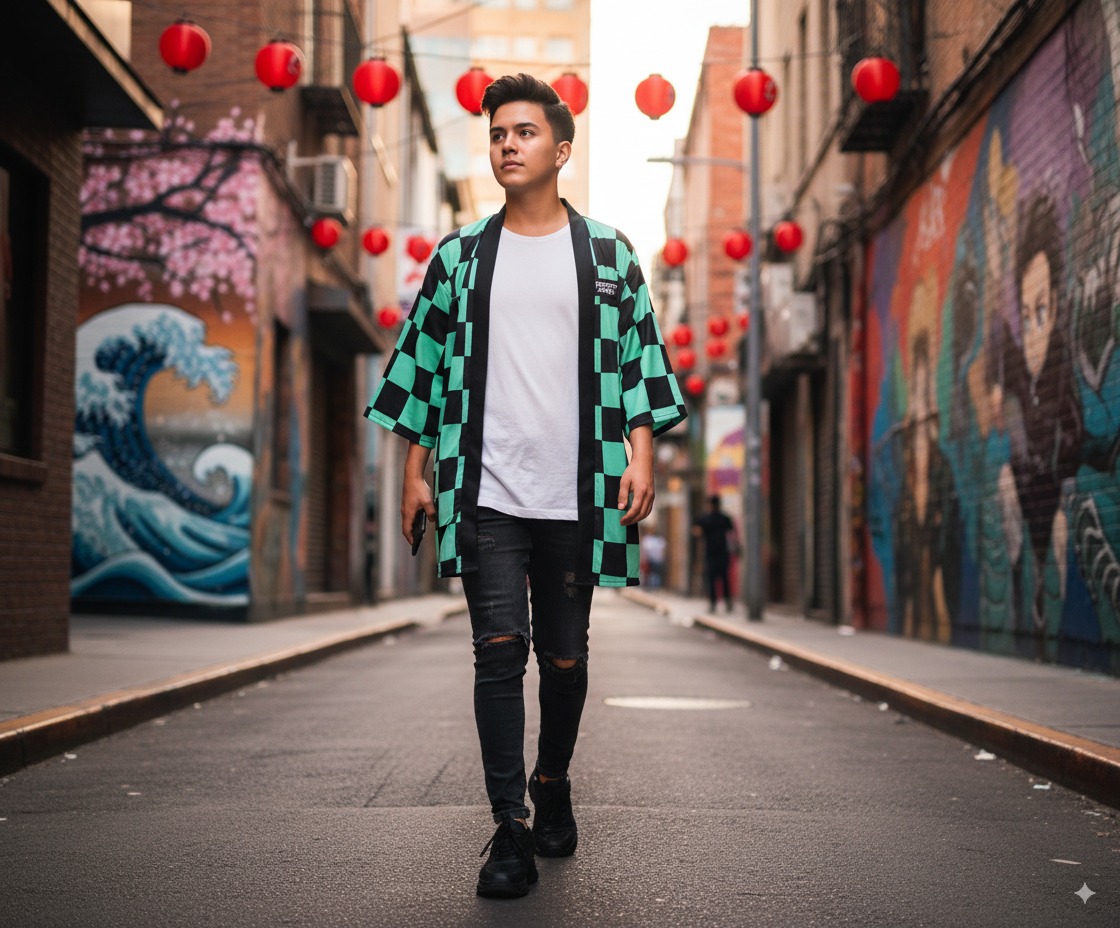 El Kimono Tanjiro destaca por su impresionante estampado que captura la esencia del personaje, simbolizando perseverancia, protección y bondad. Con detalles meticulosamente cuidados, este kimono es ideal para quienes buscan expresar su pasión por la serie mientras mantienen un look sofisticado y elegante. Además, su diseño versátil permite combinarlo fácilmente con jeans, faldas o incluso como una capa sobre un vestido, adaptándose sin esfuerzo a tu estilo personal.